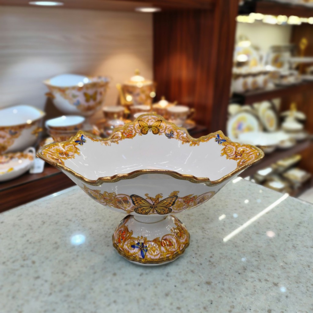 کشکول پایه دار متوسط طرح پروانه صورتی55301