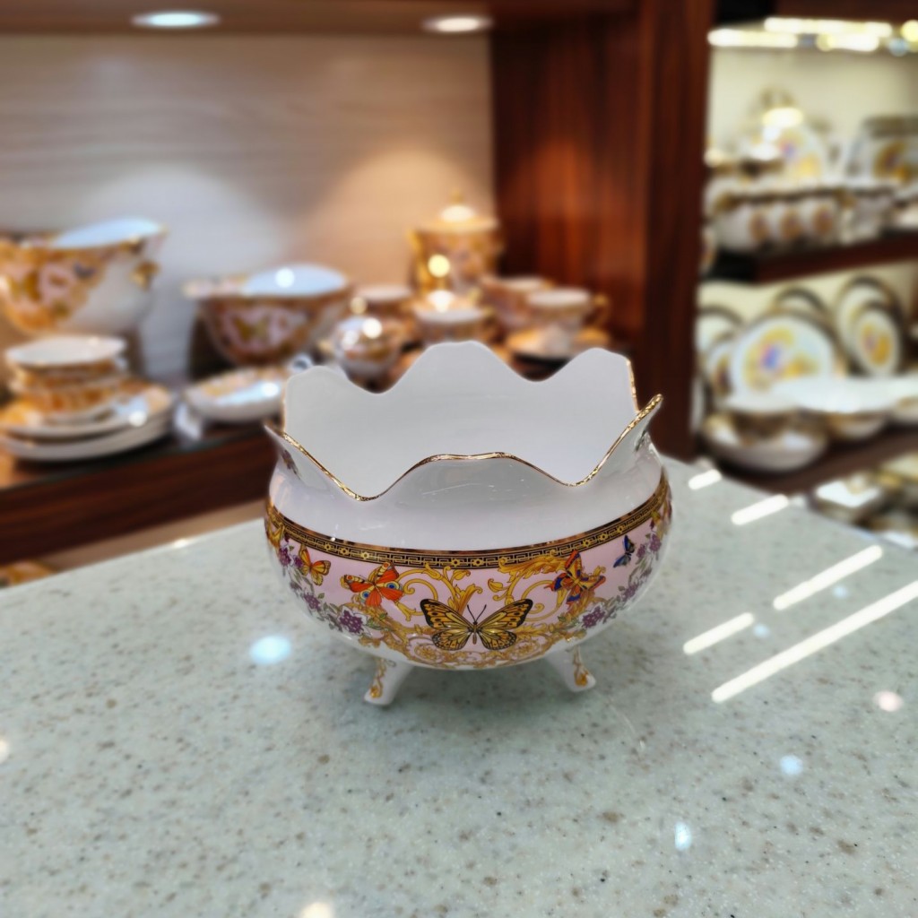 کاسه آجیل سه پایه طرح پروانه صورتی55318
