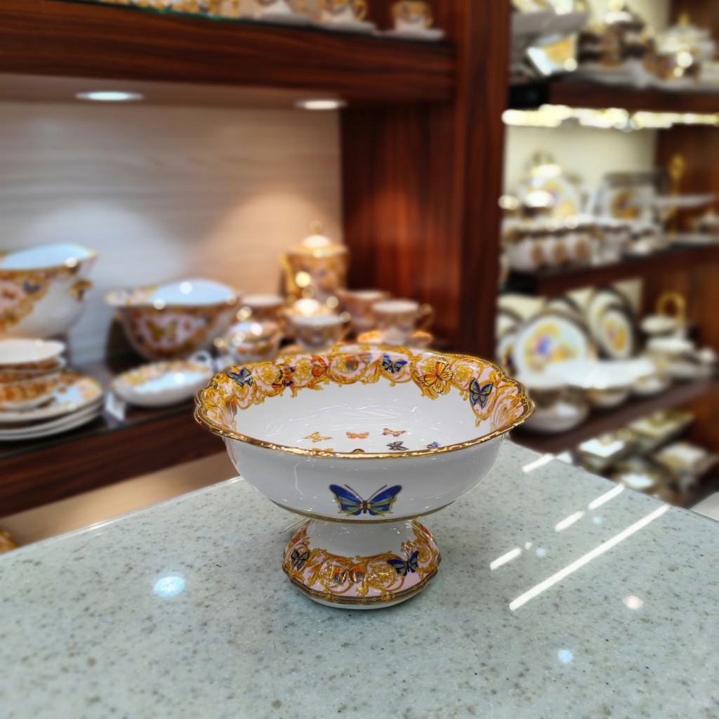 آجیل خوری گرد پایه دارطرح پروانه صورتی55304
