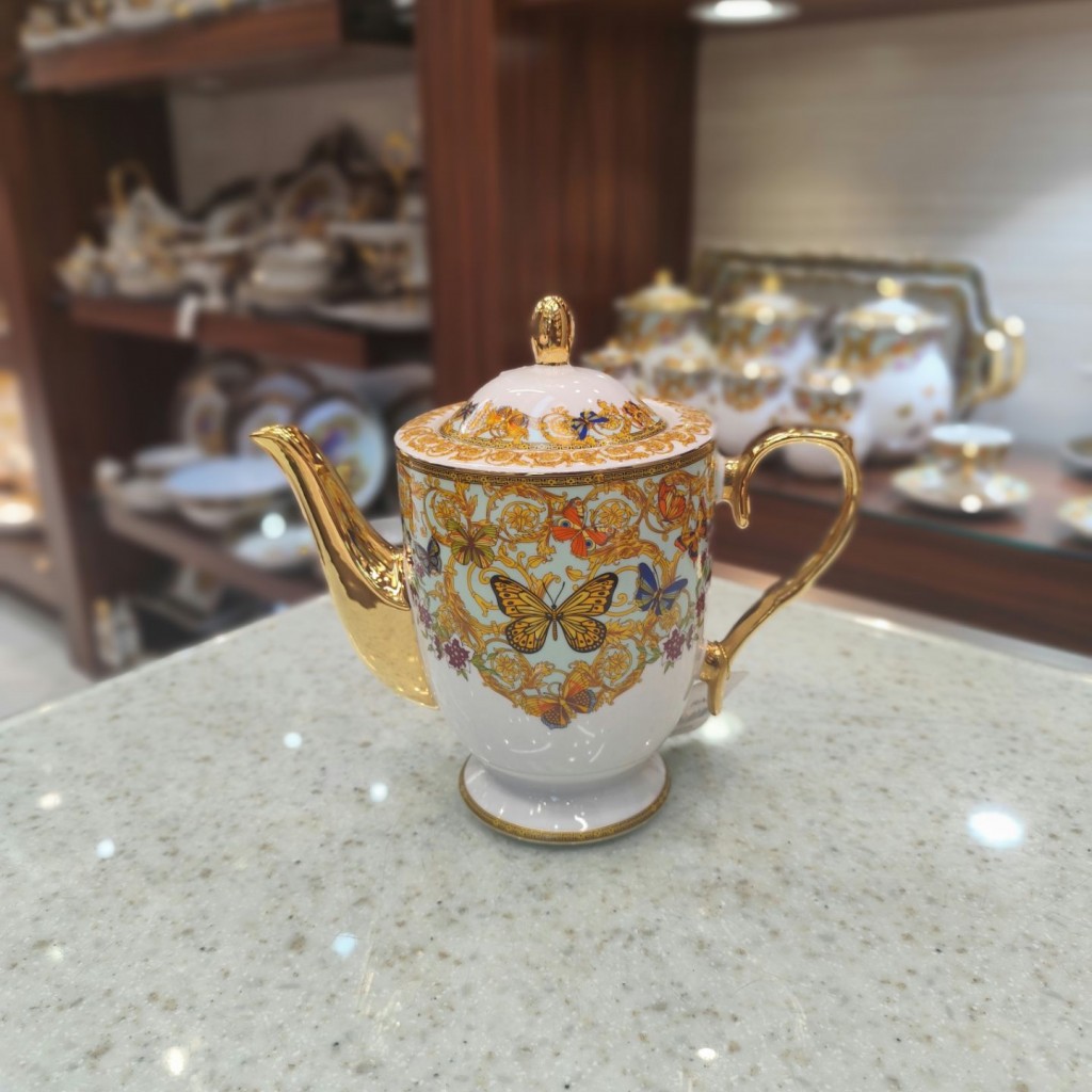 سرویس چایخوری17پارچه طرح پروانه فیروزه ای55527