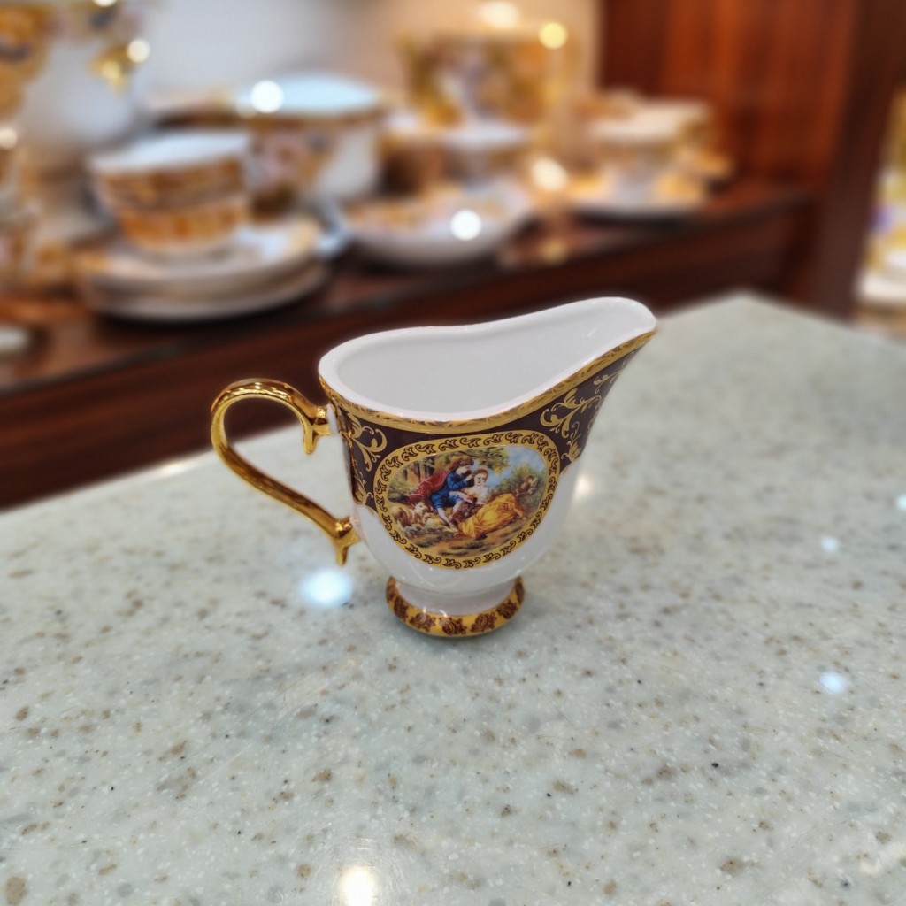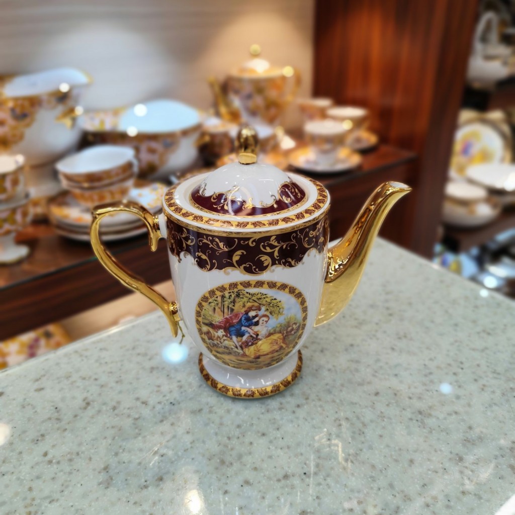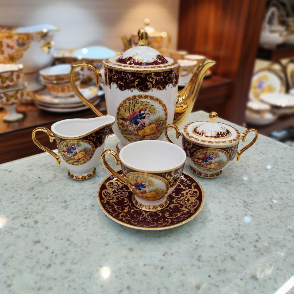شامل 6 عدد فنجان و نعلبکی، قوری، شکرپاش و قندان
