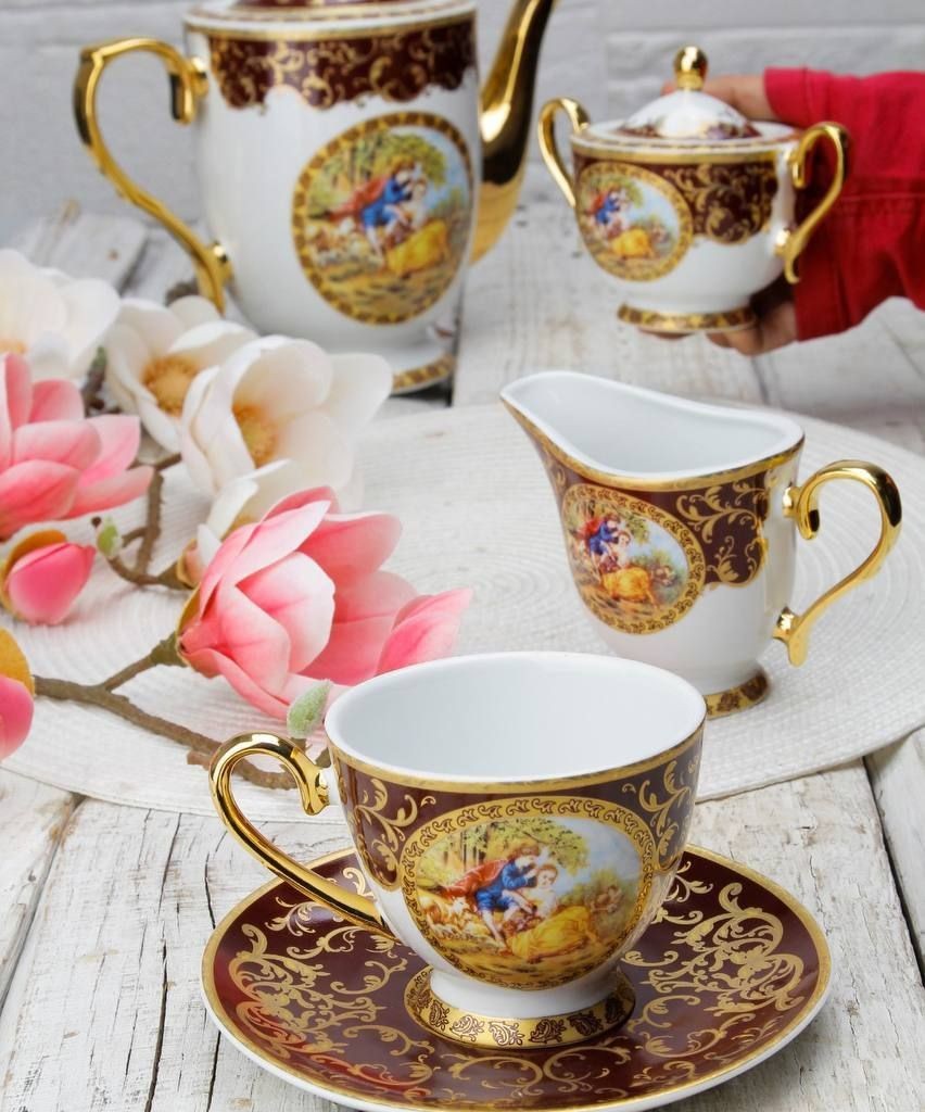 سرویس چایخوری 6 نفره 17 پارچه طرح لیلی و مجنون زرشکی